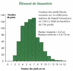 *(Le résultat de nos relevés sur 5 ans, de 1998 à 2002, montre clairement que les plants peuvent ne pas fleurir certaines années, puis refleurir ; les pieds adultes peuvent vivre et fleurir au moins 5 ans ; ils peuvent "s'éclipser" certaines années, puis être visibles à nouveau). ELEMENTS DE BIOMETRIE