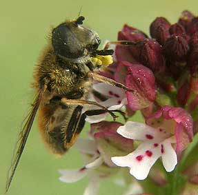 Les petite fleurs légèrement parfumées sont pollinisées par différents diptères, surtout des grosses mouches (dont Echinomyia magnicornis) et des Syrphes (dont Eristalis pertinax). Les petites pollinies jaunes se collent sur la trompe et sont peu visibles.