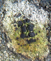 à 3 cloisons au début puis devenant murales, 14-25 x 6-10 µm. Sur roches acides ou parfois légèrement calcaires, plus particulièrement en bord de mer mais peut aussi se rencontrer jusqu'à l'étage montagnard.. |