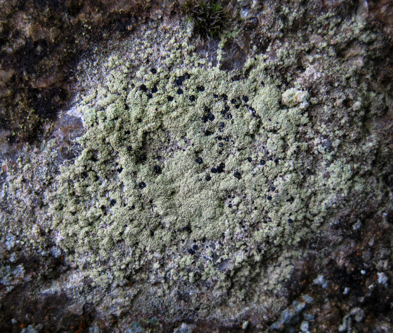 soralies rondes (0,5-1 mm de diamètre) vertes à jaunâtres pouvant couvrir tout le thalle.