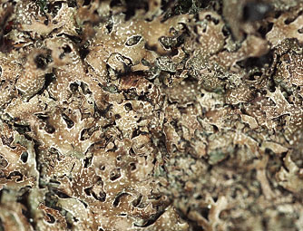 Thalle en plaques jusqu'à 20 cm de large ; sans soralies, sans isidies ; dessous noir avec rhizines noires. Médulle P+ orange ; K+ jaune puis rouge ; KC+ orange ; C-. Apothécies rares. Sur roche siliceuse, parfois sur écorce parmi les mousses. |