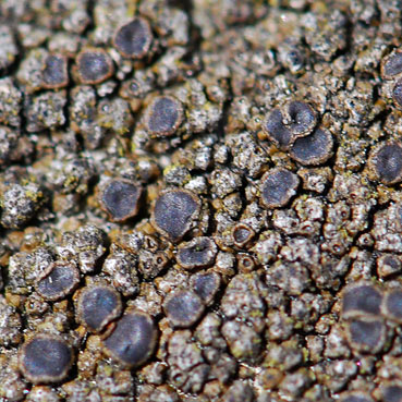 crustacé gris-brun, aréolé fendillé, rugueux. Apothécies