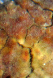 foncé, assez épais, fendillé-aréolé, délimité par une ligne