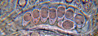 légèrement convexe ; bord thallin disparaissant rapidement. Spores
