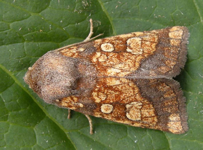 Très belle Noctuelle ; se rencontre de fin août à octobre dans les zones humides et marécageuses, les friches, les jardins et les parcs.
